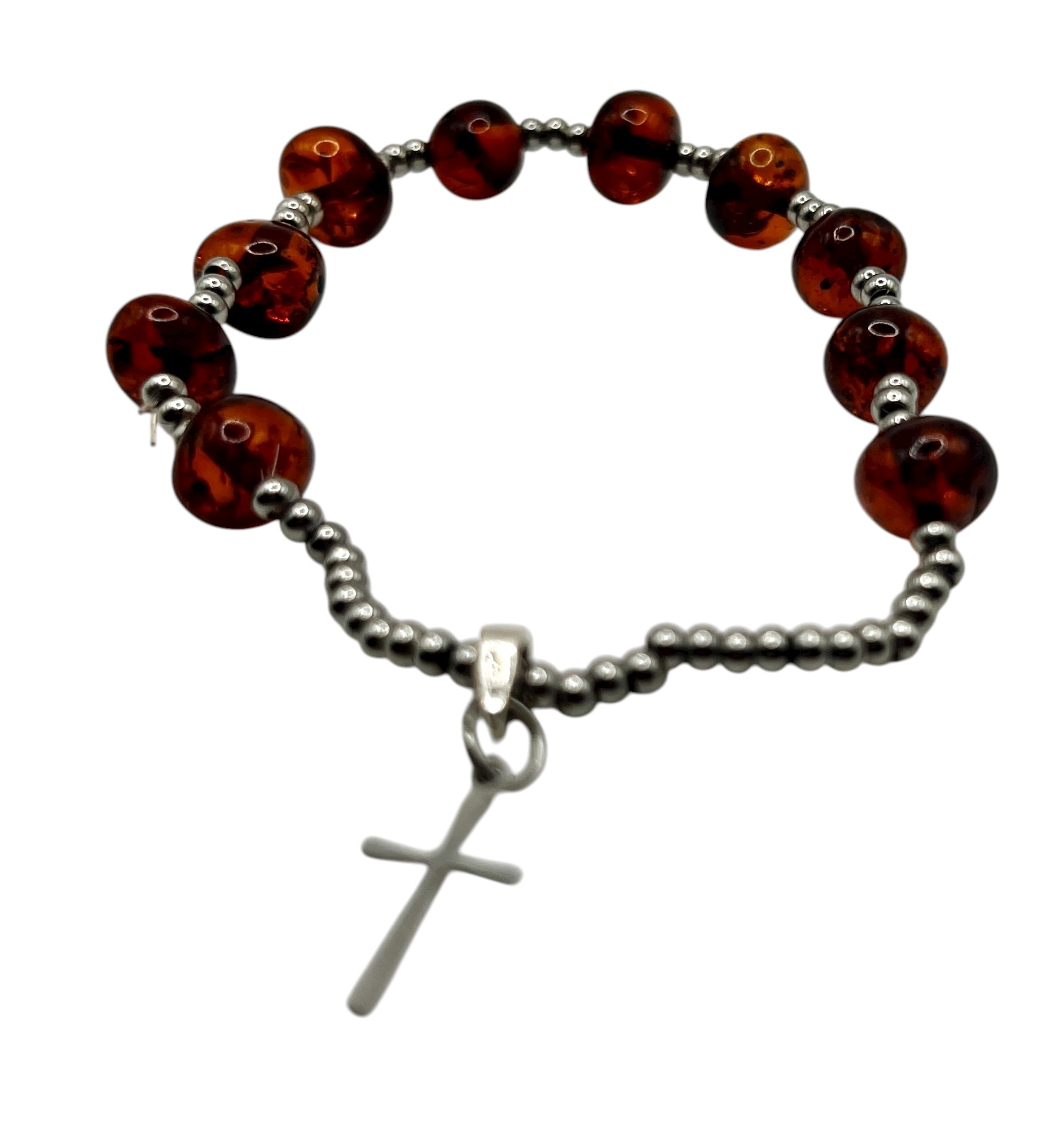 Jantár, nerezová oceľ.